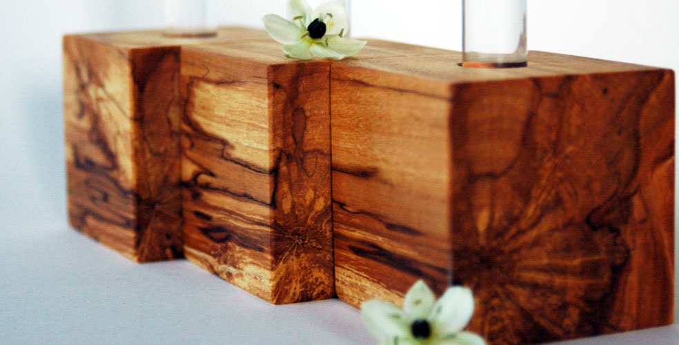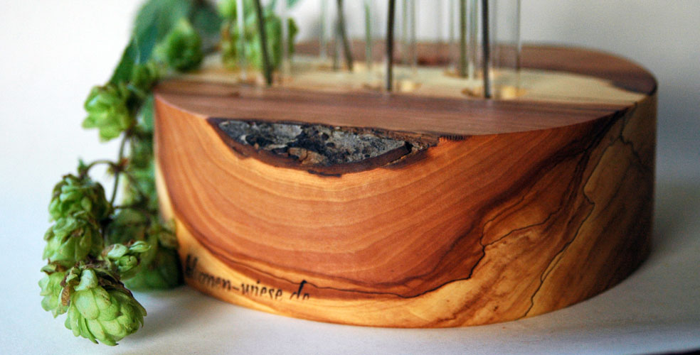 Kerstin wasn´t able to through the wood away, she had from her restauration workshop. And then the day came when a friend of her had birthday. Kerstin decided to produce from one piece wood a test tube vase. Her friend and all the guests were delighted and suddenly everyone like to have such a vase. This was the moment BLUMENWIESE was established.
