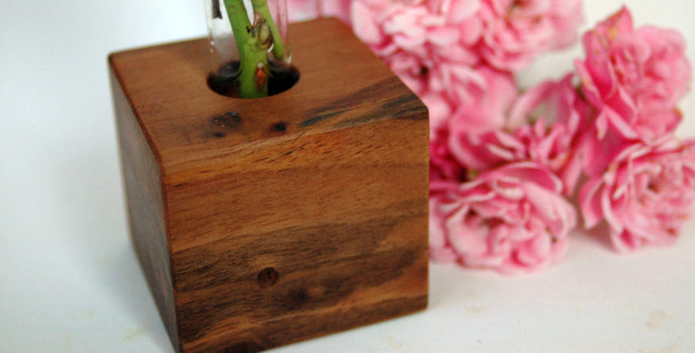 Kerstin wasn´t able to through the wood away, she had from her restauration workshop. And then the day came when a friend of her had birthday. Kerstin decided to produce from one piece wood a test tube vase. Her friend and all the guests were delighted and suddenly everyone like to have such a vase. This was the moment BLUMENWIESE was established.